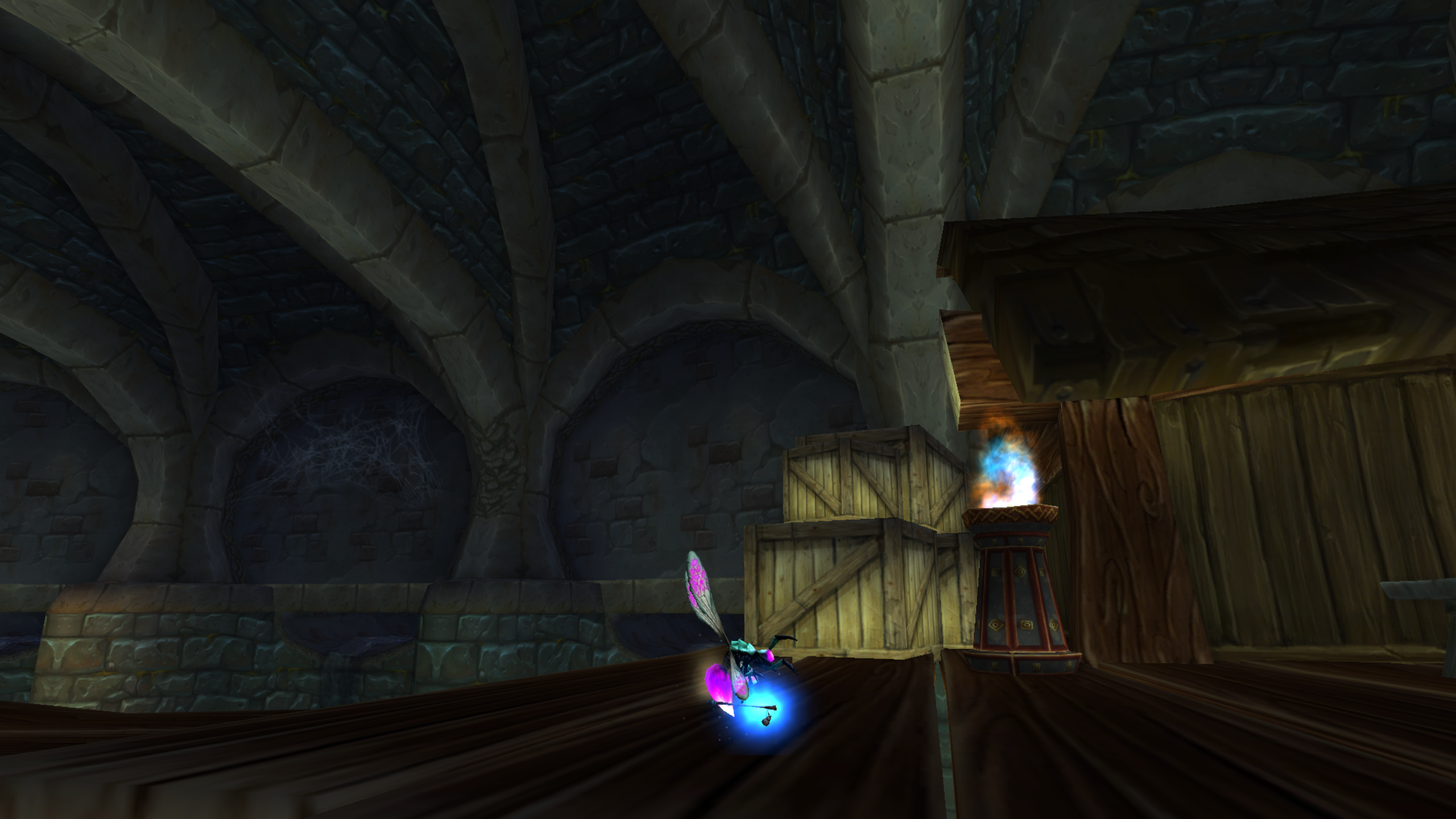 Too bad the transformation doesn’t last outside of Dalaran. I would have loved to see a little firefly wailing away on mobs with its tiny shiny stick.